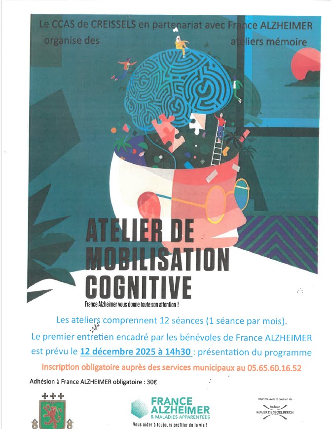 Proposé par le CCAS de la mairie de Creissels en partenariat avec France Alzheimer. Les ateliers comprennent 12 séances (1 par mois) à la mairie. Le premier entretien encadré par les bénévoles de France Alzheimer est prévu vendredi 12 décembre à 14h30. Inscription obligatoire auprès de la mairie au 05 65 60 16 52 ou […]