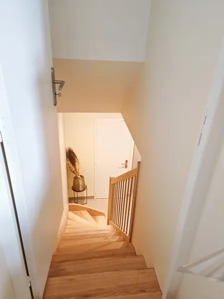 Au rdc un salon de 23m2 avec cuisine intégrée, une chambre de 19m2 (1 lit 1.60m) avec une salle d’eau, wc