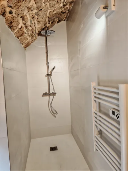 Niveau inférieur: une chambre 12m2 (1 lit 1.60m) douche italienne, lavabo