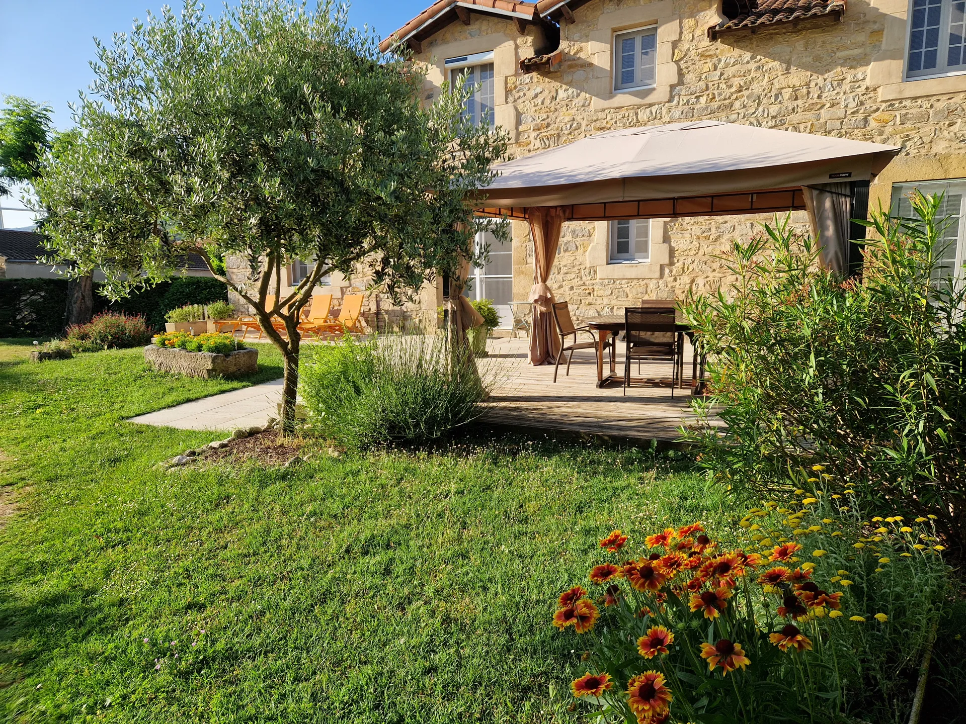Piscine. Jardin, terrasse, salon de jardin, Barbecue.